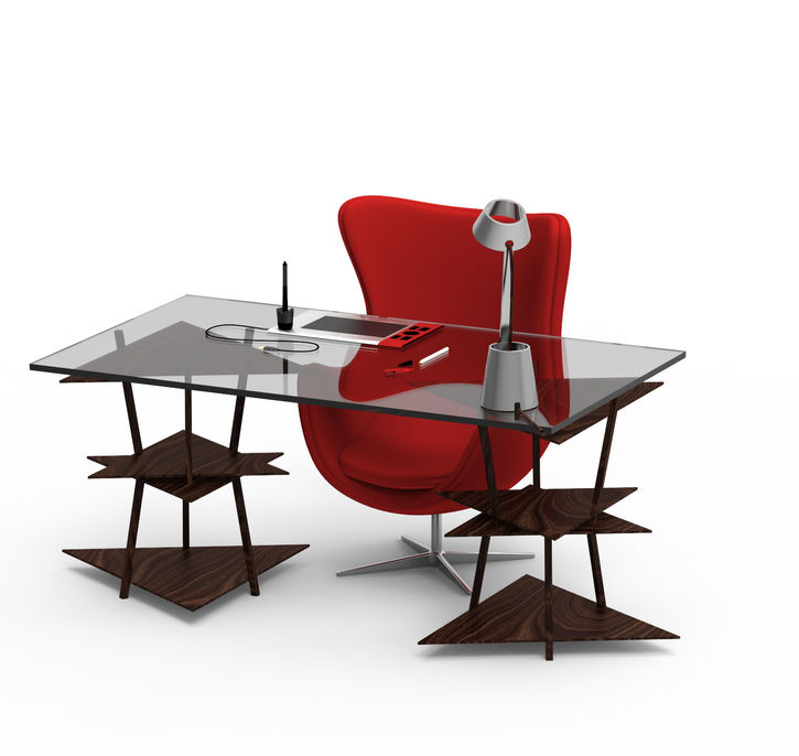 In order to save space in a student apartment, I created a pair of trestles to combine several uses such as the desk, the shelf, mini legs for a coffee table...